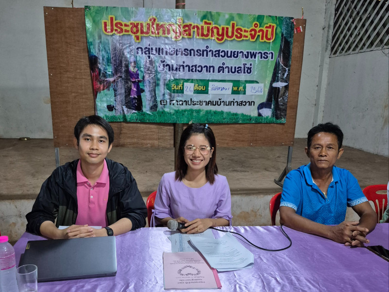 กลุ่มส่งเสริมสหกรณ์ 2 ร่วมประชุมใหญ่สามัญประจำปี 2568 กลุ่มเกษตรกรทำสวนยางพาราบ้านท่าสวาท ตำบลโซ่ ณ ศาลาประชาคมบ้านท่าสวาท เขตพื้นที่อำเภอโซ่พิสัย