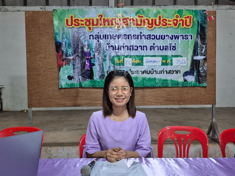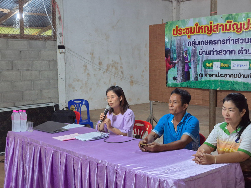 วันอังคารที่ 26 สิงหาคม 2568 นางพรสถิตย์ กำไรทอง สหกรณ์จังหวัดบึงกาฬ มอบหมายให้นางสาวสิริเนตร โพระกัน ผู้อำนวยการกลุ่มส่งเสริมสหกรณ์ 2 พร้อมด้วยบุคลากรในสังกัด เข้าร่วมประชุมใหญ่สามัญประจำปี ของกลุ่มเกษตรกรทำสวนยางพาราบ้านท่าสวาท ตำบลโซ่ ณ ศาลาประชาคมบ้านท่าสวาท ตำบลโซ่ อำเภอโซ่พิสัย จังหวัดบึงกาฬ โดยมีนายวิชัย ยวนใจ ประธานกรรมการ เป็นประธานในการประชุม ในการประชุมครั้งนี้มีวาระที่สำคัญ อาทิ พิจารณาอนุมัติงบการเงิน (ปีบัญชีสิ้นสุด 31 พฤษภาคม 2568) และพิจารณาขอรับการสนับสนุน อุปกรณ์การตลาด จากกรมส่งเสริมสหกรณ์ เป็นต้น