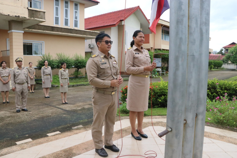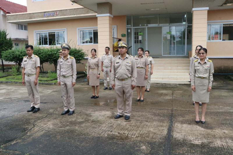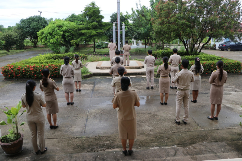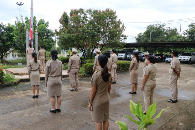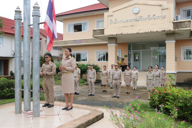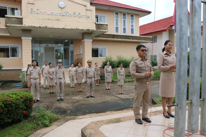 สำนักงานสหกรณ์จังหวัดบึงกาฬ ร่วมเคารพธงชาติและร้องเพลงชาติไทย ณ บริเวณเสาธงด้านหน้าอาคาร 1 สำนักงานสหกรณ์จังหวัดบึงกาฬ