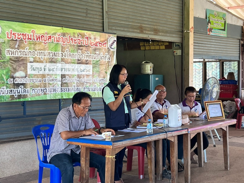 วันพุธที่ 24 กันยายน 2568 เวลา 09.30 น. นางพรสถิตย์ กำไรทอง สหกรณ์จังหวัดบึงกาฬ มอบหมายให้ นางนารีรัตน์ มีแสง ผู้อำนวยการกลุ่มส่งเสริมสหรกณ์ 3 พร้อมด้วยนางสาวอธิษฐาน อุปชัย นักวิชาการสหกรณ์ปฏิบัติการและนายฐิติพงศ์ นิลมงคล นักวิชาการสหกรณ์ปฏิบัติการ ร่วมประชุมใหญ่สามัญประจำปี 2568 สหกรณ์กองทุนสวนยางโคกกว้างพัฒนา จำกัด โดยมี นายบุญมี สุวรรณพรม เป็นประธานในการประชุมครั้งนี้ ณ ศาลาประชาคมบ้านบึงสำราญ ต. โคกกว้าง อ.บุ่งคล้า จ.บึงกาฬ