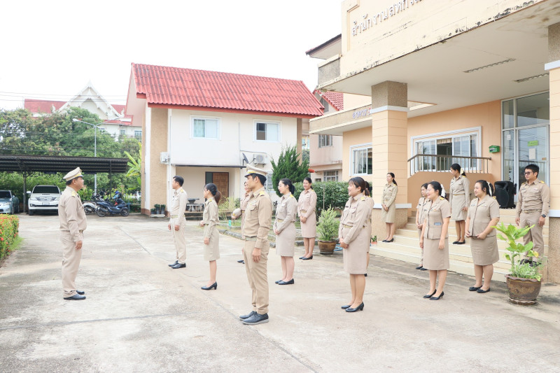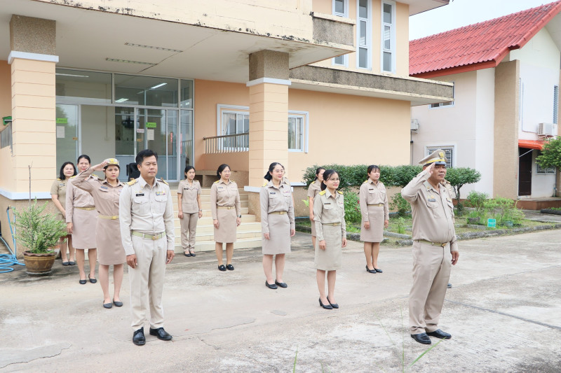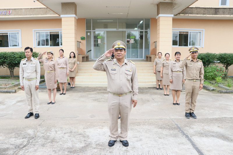 บุคลากรสำนักงานสหกรณ์จังหวัดบึงกาฬ ร่วมเคารพธงชาติและร้องเพลงชาติไทย ณ บริเวณเสาธงด้านหน้าอาคาร 1 สำนักงานสหกรณ์จังหวัดบึงกาฬ