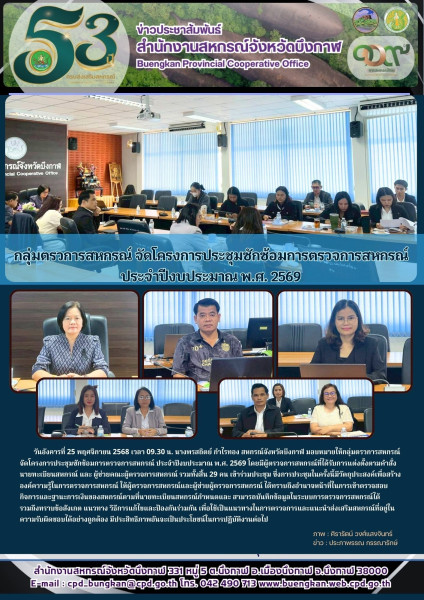 สหกรณ์จังหวัดบึงกาฬ เป็นประธานในที่ประชุมซักซ้อมการตรวจการสหกรณ์ ประจำปีงบประมาณ พ.ศ. 2569 ณ ห้องประชุมชั้น 2 อาคาร 2 สำนักงานสหกรณ์จังหวัดบึงกาฬ