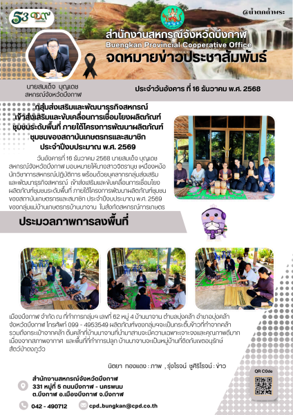 กลุ่มส่งเสริมและพัฒนาธุรกิจสหกรณ์ เข้าส่งเสริมและขับเคลื่อนการเชื่อมโยงผลิตภัณฑ์ชุมชนระดับพื้นที่ ภายใต้โครงการพัฒนาผลิตภัณฑ์ชุมชนของสถาบันเกษตรกรและสมาชิก ประจำปีงบประมาณ พ.ศ. 2569
