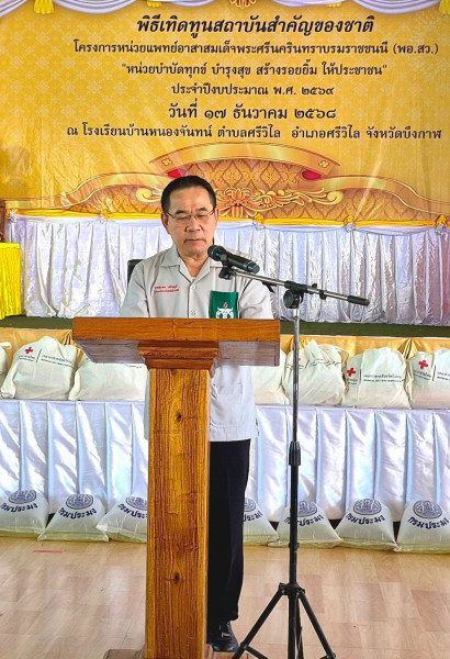 วันพุธที่ 17 ธันวาคม 2568 นายสมเด็จ บุญเดช สหกรณ์จังหวัดบึงกาฬ มอบหมายให้นายธราธิป ทิพย์กรรณ ผู้อำนวยการกลุ่มจัดตั้งและส่งเสริมสหกรณ์ พร้อมด้วยบุคลากรในสำนักงานสหกรณ์จังหวัดบึงกาฬ ร่วมออกหน่วยบริการประชาชนตามโครงการ “ปกป้องและเชิดชูสถาบันพระมหากษัตริย์ และหน่วยบำบัดทุกข์ บำรุงสุข สร้างรอยยิ้มให้ประชาชนจังหวัดบึงกาฬ” ประจำเดือนธันวาคม 2568 ณ โรงเรียนบ้านหนองจันทน์ ตำบลศรีวิไล อำเภอศรีวิไล จังหวัดบึงกาฬ โดยมีนายสุรพล เจริญภูมิ ผู้ว่าราชการจังหวัดบึงกาฬ เป็นประธานในพิธี