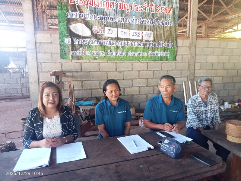 กลุ่มส่งเสริมสหกรณ์ 3 เข้าร่วมประชุมใหญ่วิสามัญ ปี 2568 สหกรณ์กองทุนสวนยางท่าเชียงเครือ จำกัด ณ ที่ทำการสหกรณ์ เขตพื้นที่อำเภอเซกา