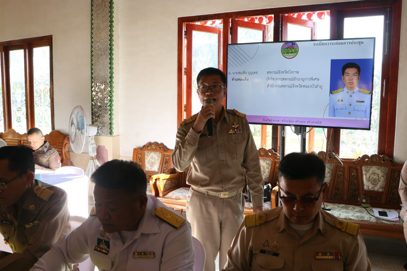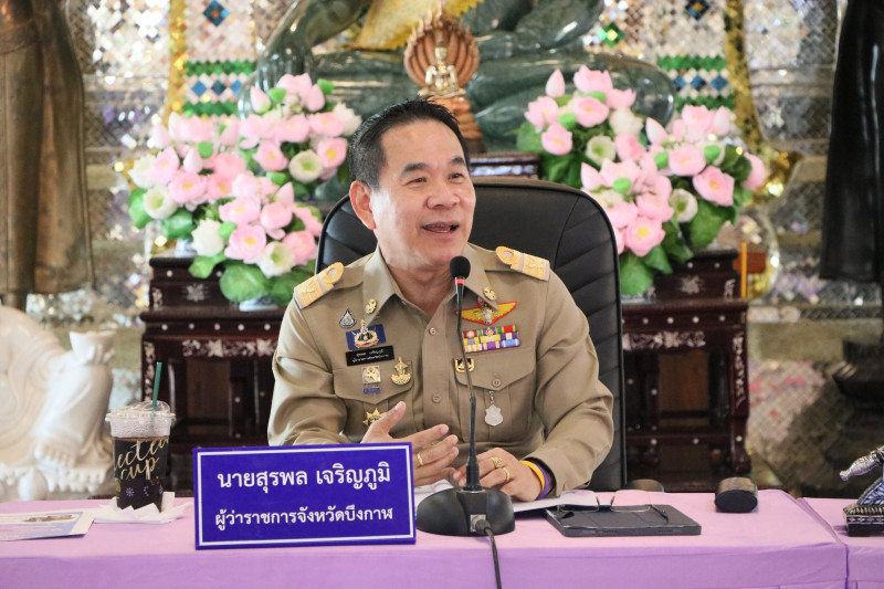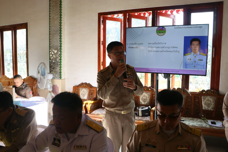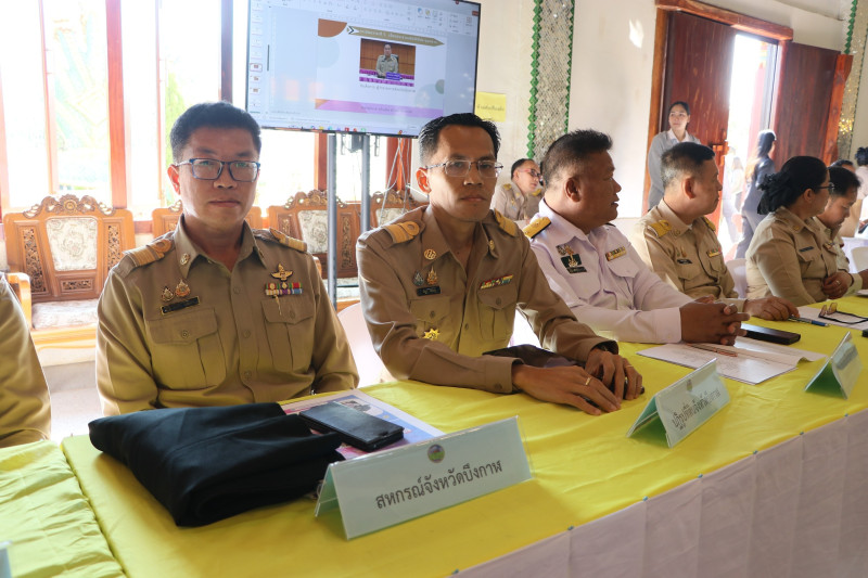 ในการประชุมติดตามความคืบหน้าและรายงานผลการดำเนินงานของส่วนราชการ หน่วยงานภาครัฐ ภาคเอกชน และภาคีเครือข่ายในพื้นที่จังหวัดบึงกาฬ ตามภารกิจหลักและนโยบายของรัฐบาล โดยมุ่งเน้นการบูรณาการทำงานร่วมกันระหว่างหน่วยงานในระดับจังหวัด เพื่อเสริมสร้างประสิทธิภาพในการบริหารราชการแก้ไขปัญหาความเดือดร้อนของประชาชน