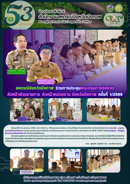 สหกรณ์จังหวัดบึงกาฬ ร่วมการประชุมคณะกรมการจังหวัด หัวหน้าส่วนราชการ หัวหน้าหน่วยงาน จังหวัดบึงกาฬ ครั้งที่ 1/2569
