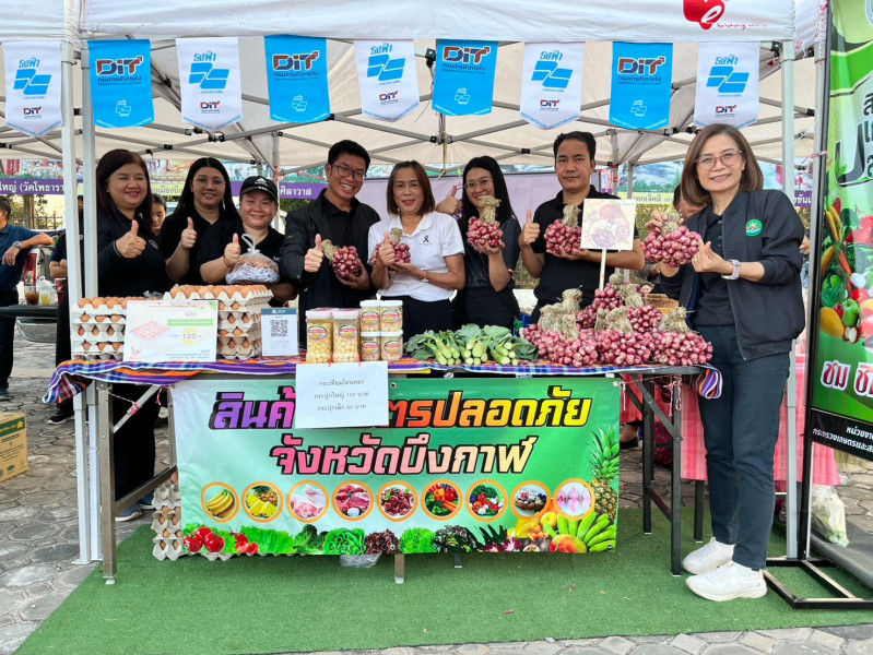 สหกรณ์จังหวัดบึงกาฬ นำสินค้าเกษตรปลอดภัยมาจำหน่ายที่ตลาดศาลากลางสร้างสุข บริเวณลานด้านหน้าศาลากลางจังหวัด