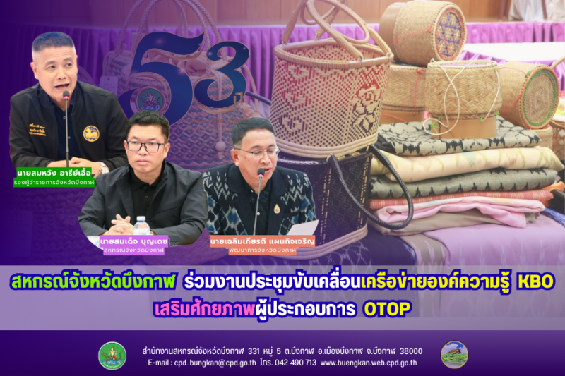 ในการประชุมได้ร่วมพิจารณาแนวทางขับเคลื่อนแผนงานพัฒนา OTOP ของจังหวัดบึงกาฬ ส่งเสริมการตลาดของผลิตภัณฑ์ท้องถิ่น มุ่งสร้างความเข้มแข็งให้เศรษฐกิจฐานรากอย่างยั่งยืน โดยคณะกรรมการเครือข่ายองค์ความรู้ (KBO) เป็นกลไกระดับจังหวัดที่บูรณาการความร่วมมือจากหน่วยงานภาครัฐ ภาคการศึกษา ภาคเอกชน และผู้ทรงคุณวุฒิ ทำหน้าที่สนับสนุนองค์ความรู้ เทคโนโลยี นวัตกรรม การออกแบบบรรจุภัณฑ์ การพัฒนามาตรฐานผลิตภัณฑ์ ตลอดจนการบริหารจัดการและการตลาด เพื่อยกระดับผู้ประกอบการ OTOP ให้สามารถแข่งขันได้ทั้งในระดับประเทศและสากล