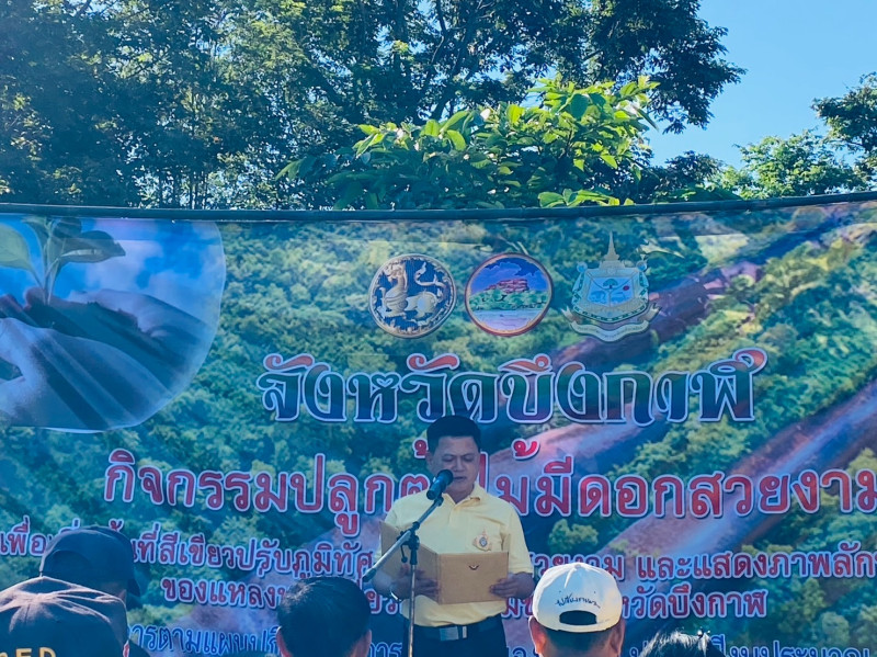 ร่วมกิจกรรม ปลูกต้นไม้มีดอกสวยงาม เพื่อเพิ่มพื้นที่สีเขียว ปรับภูมิทัศน์ให้ร่มรื่น สวยงามและแสดงภาพลักษณ์ที่ดีของแหล่งท่องเที่ยวทางธรรมชาติจังหวัดบึงกาฬ ประจำปี พ.ศ. 2566